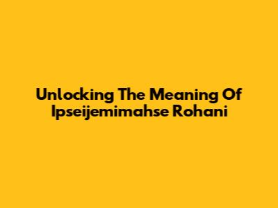 Unlocking The Meaning Of Ipseijemimahse Rohani