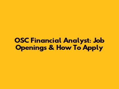 OSC Financial Analyst: Job Openings & How To Apply
