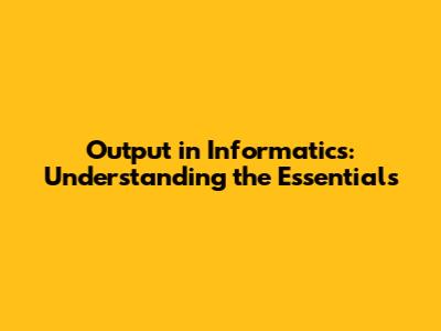 Introduction: What Exactly is Output in Informatics?