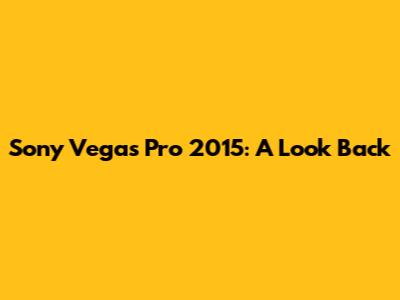 Sony Vegas Pro 2015: A Look Back