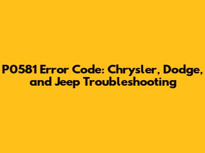 Hey car enthusiasts! Ever seen that pesky P0581 error code pop up on your Chrysler, Dodge, or Jeep's dashboard? Don't sweat it, because we're diving deep into what it means, the potential causes, and how to get your ride back in tip-top shape. This code is a real head-scratcher, related to your vehicle's cruise control system, and can be a symptom of a simple fix or a more complex issue. So, grab your coffee (or your favorite beverage), and let's get into the nitty-gritty of the P0581 code!
