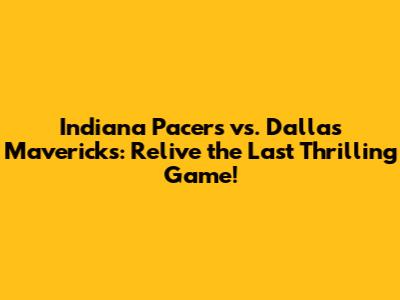 Hey guys! Let’s dive into a recap of the Indiana Pacers versus Dallas Mavericks last game. This matchup was a rollercoaster of emotions, filled with incredible plays, strategic decisions, and nail-biting moments that kept fans on the edge of their seats. Whether you're a die-hard Pacers fan, a Mavericks supporter, or just a basketball enthusiast, this breakdown will give you all the juicy details you need. Let’s get started!