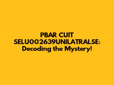 Ever stumbled upon a cryptic code or phrase online and felt like you needed a secret decoder ring to understand it? Well, today, we're diving deep into the enigmatic world of "PBAR CUIT SELU002639UNILATRALSE." This string of characters might seem like gibberish at first glance, but let's break it down and see if we can unravel its meaning. Whether it's an obscure internet acronym, a product code, or just someone's random typing, understanding the context is key to solving the puzzle. So, buckle up, grab your detective hats, and let's get started on this linguistic adventure! We'll explore possible origins, potential meanings, and even some humorous interpretations along the way. Who knows? By the end of this article, you might just become an expert decoder yourself!