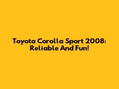 Toyota Corolla Sport 2008: Reliable And Fun!