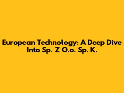 European Technology: A Deep Dive Into Sp. Z O.o. Sp. K.