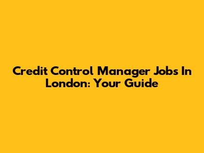 Credit Control Manager Jobs In London: Your Guide