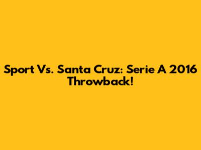 Sport Vs. Santa Cruz: Serie A 2016 Throwback!