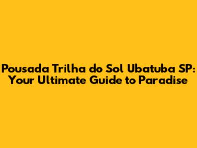 Hey guys, if you're dreaming of a getaway to the stunning coast of São Paulo, Brazil, then let me introduce you to Pousada Trilha do Sol Ubatuba SP. This isn't just any hotel; it's a slice of paradise nestled in the heart of Ubatuba, a city renowned for its breathtaking beaches, lush rainforests, and vibrant atmosphere. In this guide, we'll dive deep into everything you need to know about Pousada Trilha do Sol, from its location and amenities to tips on making the most of your stay. Get ready to pack your bags and set your sights on an unforgettable experience! We'll explore why this pousada is a top choice for travelers, how to get there, what to expect, and some insider tips to make your vacation absolutely amazing. So, let's get started and discover the magic of Pousada Trilha do Sol!