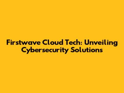 Firstwave Cloud Tech: Unveiling Cybersecurity Solutions