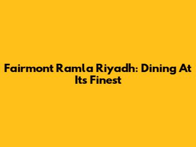 Fairmont Ramla Riyadh: Dining At Its Finest