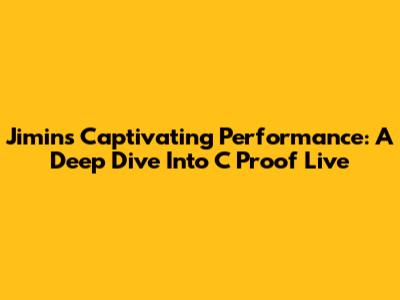 Jimin's Captivating Performance: A Deep Dive Into C Proof Live