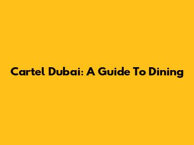 Cartel Dubai: A Guide To Dining