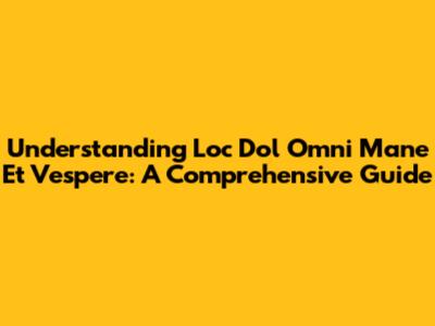 Understanding "Loc Dol Omni Mane Et Vespere": A Comprehensive Guide
