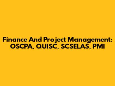 Finance And Project Management: OSCPA, QUISC, SCSELAS, PMI