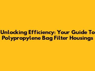 Unlocking Efficiency: Your Guide To Polypropylene Bag Filter Housings