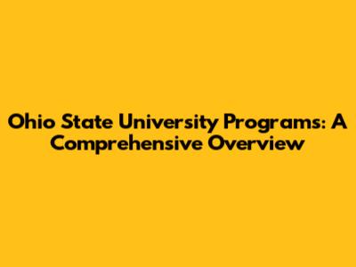 Ohio State University Programs: A Comprehensive Overview