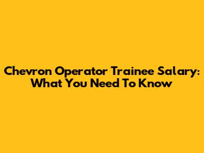 Chevron Operator Trainee Salary: What You Need To Know