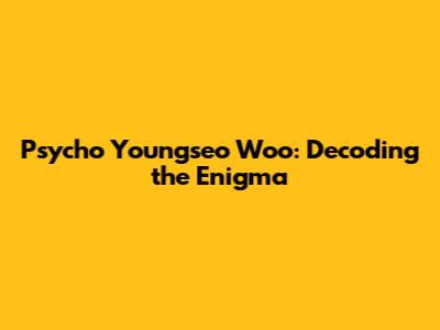 First off, when we talk about Psycho Youngseo Woo, it's essential to understand the core concept. It's not just about the words themselves, but what they represent. Imagine a scenario, a character, or even a whole world built around these words. The 'psycho' aspect might hint at unconventional thinking, intense emotions, or even a touch of madness. 'Youngseo' could refer to a specific individual or a representation of youth and potential. And 'Woo' adds an element of intrigue, perhaps suggesting charm, influence, or even a sense of wonder. Together, these elements create a powerful combination that can be interpreted in various ways.