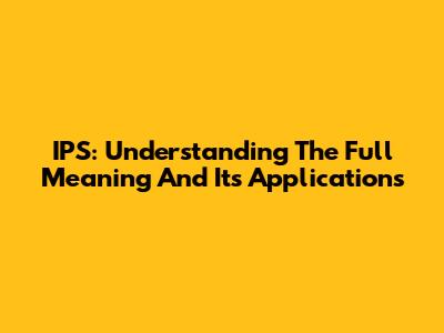IPS: Understanding The Full Meaning And Its Applications