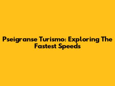 Pseigranse Turismo: Exploring The Fastest Speeds