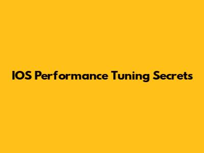 IOS Performance Tuning Secrets