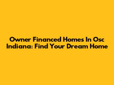 Owner Financed Homes In Osc Indiana: Find Your Dream Home