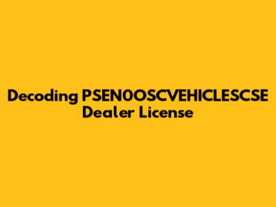 Decoding PSEN0OSCVEHICLESCSE Dealer License