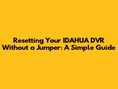 Resetting Your IDAHUA DVR Without A Jumper: A Simple Guide