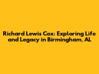 Hey everyone, let's dive into the story of Richard Lewis Cox in Birmingham, Alabama! This is a fascinating tale of a person and their connection to a city brimming with history and Southern charm. We're going to uncover some cool details, so get ready to learn more about the life and times of Richard Lewis Cox, as well as the impact he made on the Birmingham community. This journey will offer a glimpse into the local landscape and the influence individuals can have on their surroundings. Richard Lewis Cox, in Birmingham, AL, represents more than just a name; it's a look into a life lived, the relationships built, and the contributions made to the community. Join us as we explore the various facets of his life and learn more about the legacy he left behind, weaving through personal anecdotes and historical data to paint a comprehensive picture. Let's start this adventure together, shall we?