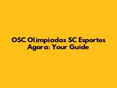 OSC Olimpiadas SC Esportes Agora: Your Guide