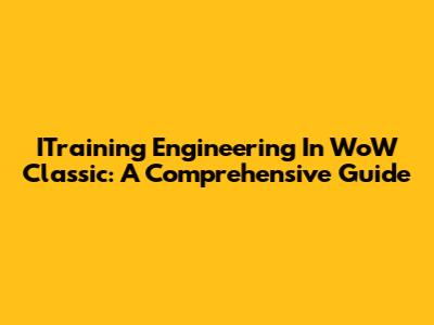 ITraining Engineering In WoW Classic: A Comprehensive Guide