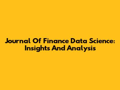 Journal Of Finance Data Science: Insights And Analysis