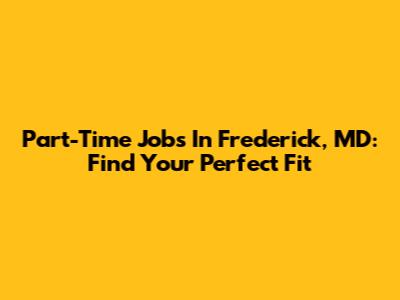 Part-Time Jobs In Frederick, MD: Find Your Perfect Fit
