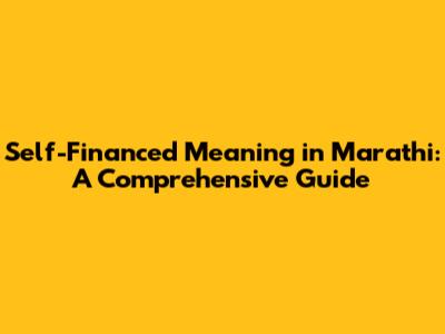 Understanding the nuances of financial terms can sometimes feel like navigating a maze, especially when dealing with different languages. In this article, we'll break down the self-financed meaning in Marathi, providing you with a comprehensive guide to grasp this concept fully. We'll explore its definition, practical applications, and how it relates to various financial scenarios. Whether you're a student, entrepreneur, or simply someone curious about financial literacy, this guide aims to equip you with the knowledge you need. So, let's dive in and unravel the meaning of self-financed in the Marathi context!