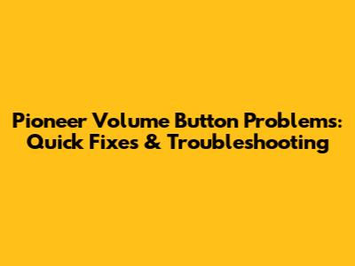 Pioneer Volume Button Problems: Quick Fixes & Troubleshooting