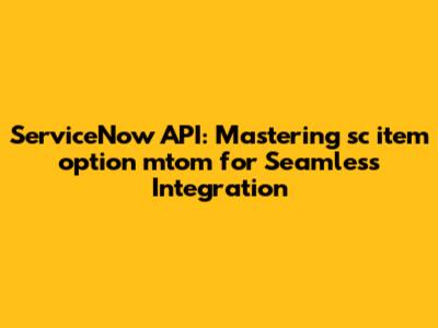 Hey everyone! Ever found yourself wrestling with how to get the most out of ServiceNow's API, especially when dealing with those tricky many-to-many relationships in your service catalog? Well, you're in luck! Today, we're diving deep into the sc_item_option_mtom table and the ServiceNow API, showing you how to unlock its full potential. This guide is all about mastering sc_item_option_mtom and making those integrations smooth and efficient. Get ready to level up your ServiceNow game, because we're about to make your life a whole lot easier!