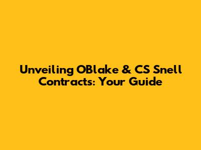 Unveiling OBlake & CS Snell Contracts: Your Guide