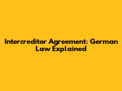 Intercreditor Agreement: German Law Explained