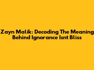 Zayn Malik: Decoding The Meaning Behind 'Ignorance Isn't Bliss'