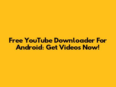 Free YouTube Downloader For Android: Get Videos Now!
