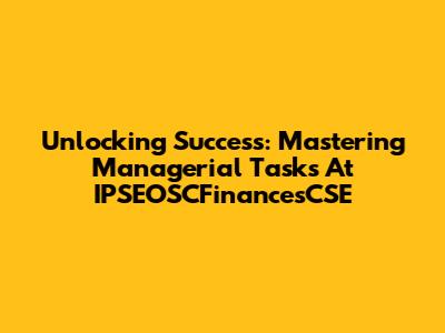 Unlocking Success: Mastering Managerial Tasks At IPSEOSCFinancesCSE