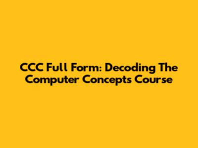 CCC Full Form: Decoding The Computer Concepts Course