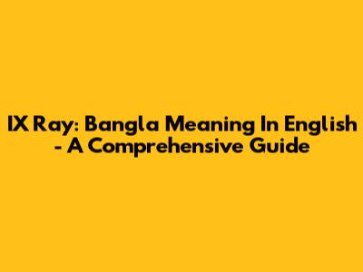 IX Ray: Bangla Meaning In English - A Comprehensive Guide