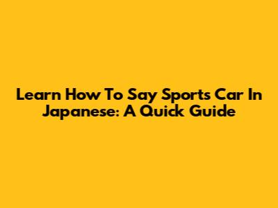 Learn How To Say 'Sports Car' In Japanese: A Quick Guide