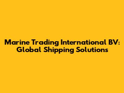Marine Trading International BV: Global Shipping Solutions