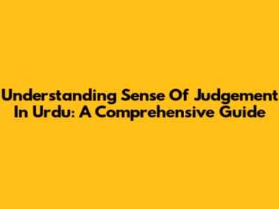 Understanding 'Sense Of Judgement' In Urdu: A Comprehensive Guide