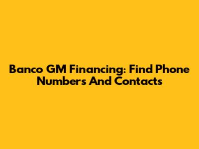 Banco GM Financing: Find Phone Numbers And Contacts
