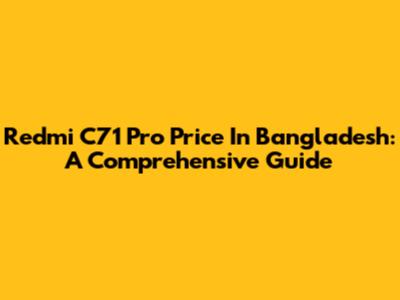 Redmi C71 Pro Price In Bangladesh: A Comprehensive Guide