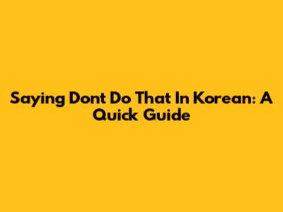 Saying "Don't Do That" In Korean: A Quick Guide