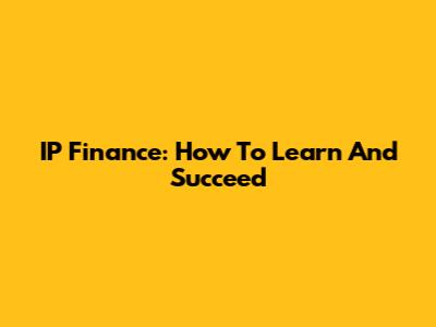 IP Finance: How To Learn And Succeed